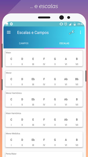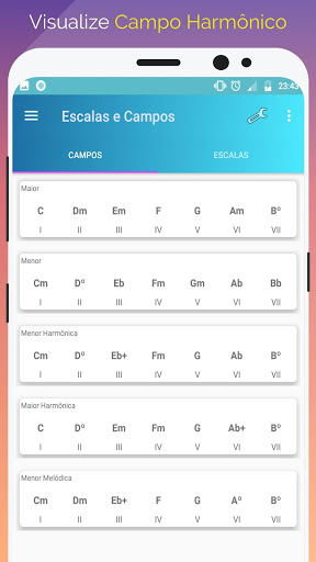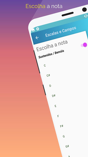 Visualize os principais campos harmônicos e suas escalas Escolha a nota e será mostrado pra você!