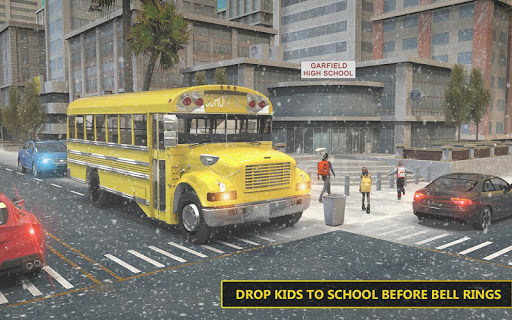 Hoping all high School has begins, Start your bus driving duty early in morning as high school bus driver and pick up school students. In this real snow school bus simulator game Bus driver regularly transport kids to school and after school pick up service bring them back for home and provide school transport service. The students are waiting for their school bus to transport them to and from school. And also there are multiple city school buses including (the famous yellow bus) are waiting for you in extreme winter snow. No need to break traffic rules while driving your school transport bus because a perfect bus driver never breaks traffic laws.