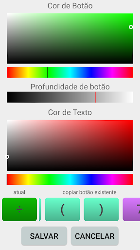 A calculadora é customizada permitindo que você mude as cores da tela, do fundo e de todos os botões individuais, permitindo que você personalize sua aparência.