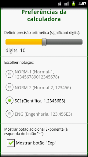* O arredondamento dos resultados é ajustável entre 5 e 15 dígitos. Notações disponíveis: Normal (NORMal), Científica (SCIentific) e Engenharia (ENGineering).