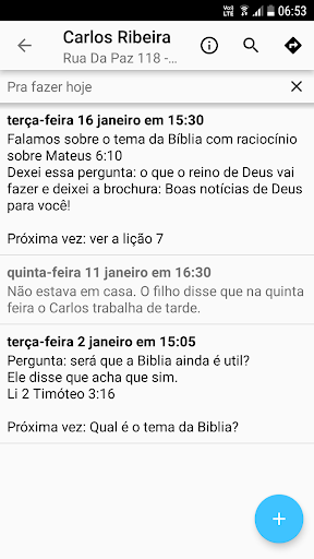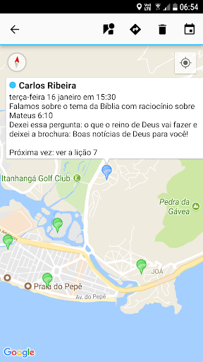• É possível sublinhar na lista e na mapa as revisitas para fazer hoje ou numa outra data