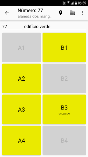 • Gestão dos predios para coordenadas das campaninhas. Define o número de linhas e colunas. Mantenha carregada uma cela para trocar o estado (nenhum em casa/encontrado). Carregue dois vezes uma cela para adicionar uma nota.