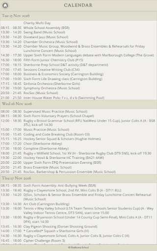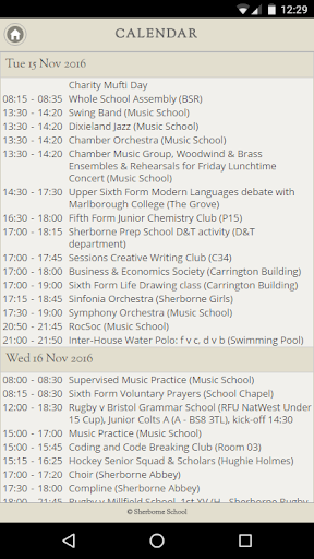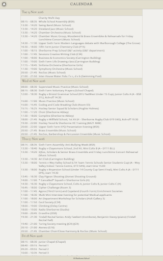 The Sherborne School App provides bespoke access to useful information for pupils, parents and staff. Information includes