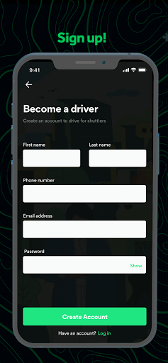 Tornar-se um driver é simples, baixar o aplicativo, registrar e alguém de shuttlers irá acompanhar você e configurar sua primeira viagem.