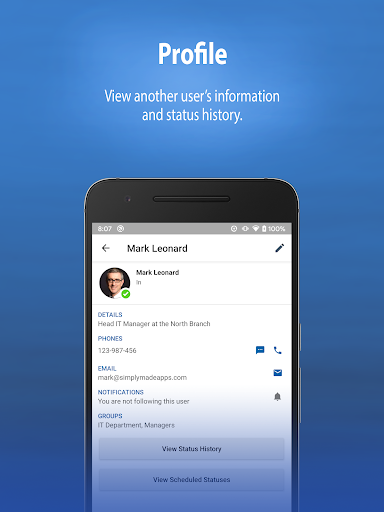 * Perfis de usuários - Páginas individuais de perfil para cada usuário. Você pode enviar e-mails, ligar ou enviar um texto um usuário direto do seu perfil.