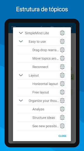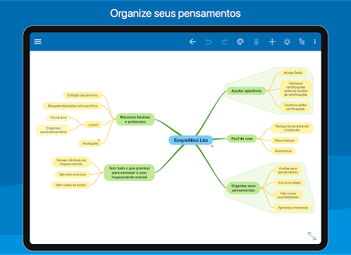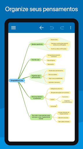 O SimpleMind foi otimizado para telefones e tablets. Algumas funções estão disponíveis apenas em versões mais recentes do Android.