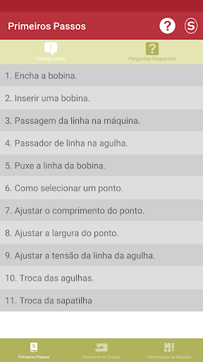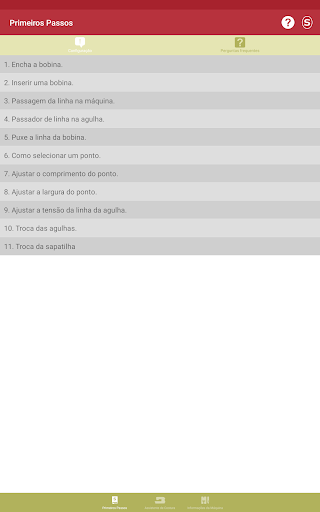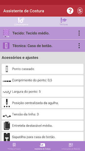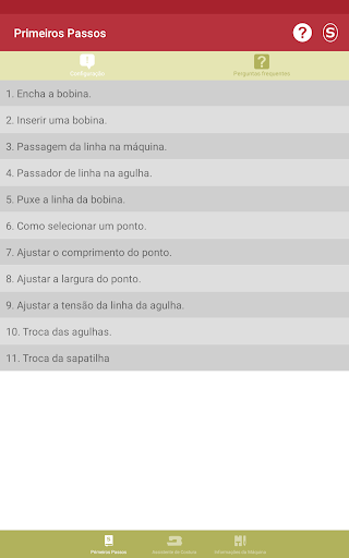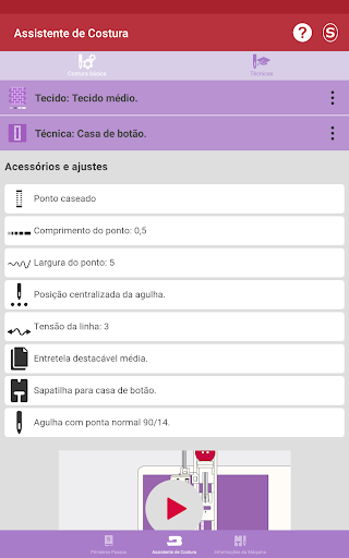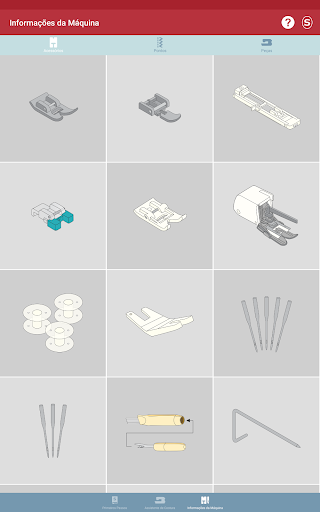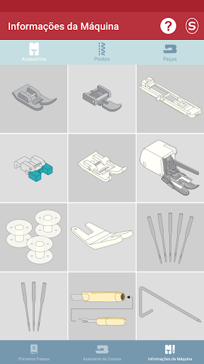 Nesta parte do aplicativo, você vai se familiarizar com sua máquina de costura Singer® * e aprender sobre: