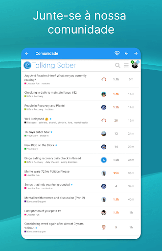 Converse sobre álcool, abuso de substâncias ou partilhe o seu contador de dias sóbrio.