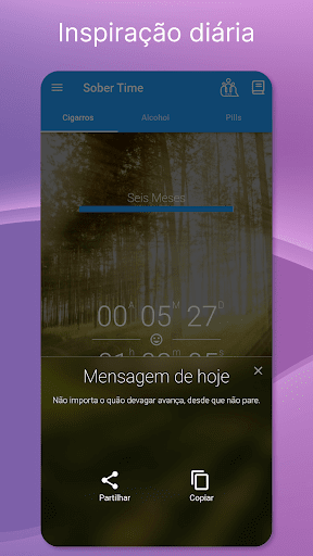 ✔ Resuma o tempo que esteve sóbrio até ao segundo