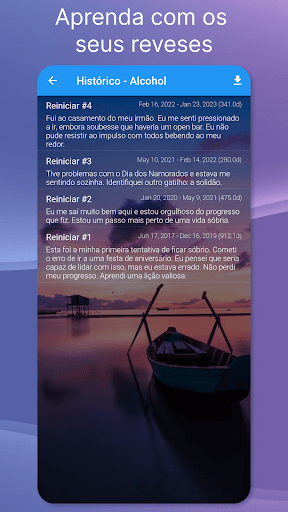 Esta app de sobriedade é a sua companheira. Terá sempre o seu contador de sobriedade perto do coração.