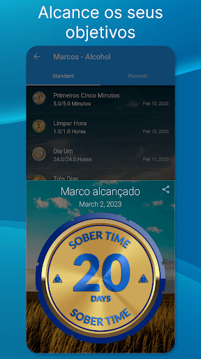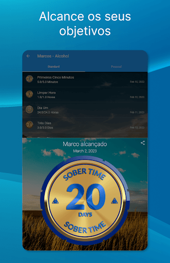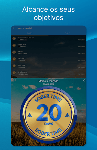 ✔ Notificações quando atinge uma meta do contador de tempo sóbrio