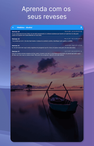 A sobriedade necessita de motivação e apoio. Ficará motivado com mensagens diárias, metas e o seu contador de sobriedade. A nossa comunidade é humana, partilhando e aprendendo com pessoas com anos ou décadas de sobriedade.