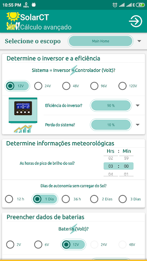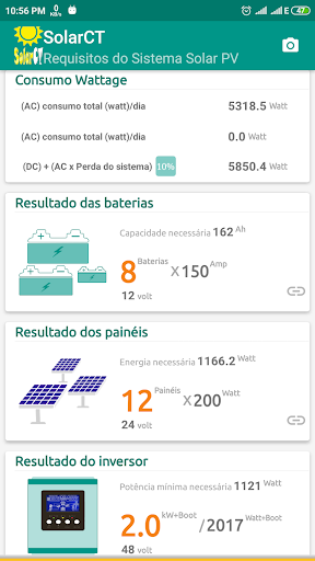 O SolarCT é uma calculadora de aplicativos para requisitos de componentes do sistema solar, como número de painéis e baterias solares necessários, tamanho do inversor / no-break e carregador do controlador e como conectar painéis e baterias solares em série e paralelo, dependendo da tensão do sistema / inversor.