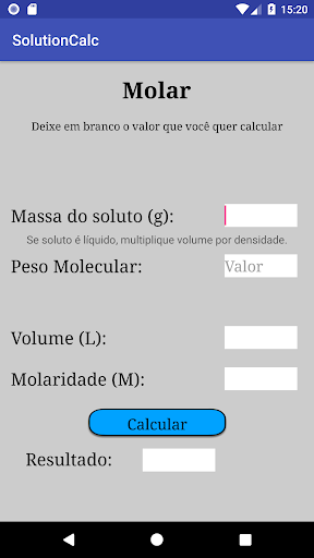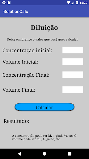 SolutionCalc é um app para graduandos e pós-graduandos, assim como profissionais, que preparam e diluem soluções como parte de sua rotina diária. Realiza cálculos de diluições e das formas mais comuns de concentrações:
