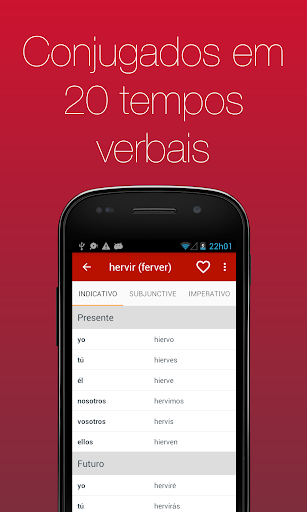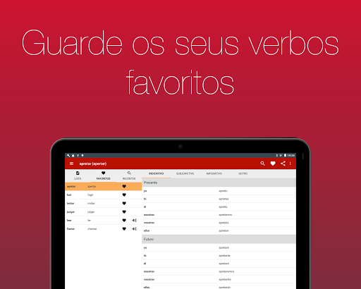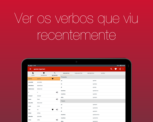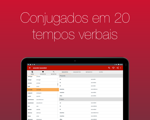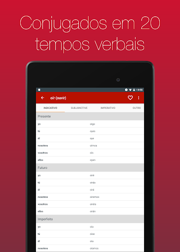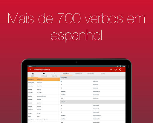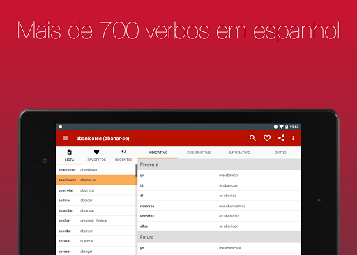 Veja mais de 700 verbos em 20 tempos verbais. Com navegação simples e busca integrada você pode, em poucos segundos, achar o verbo que precisa.