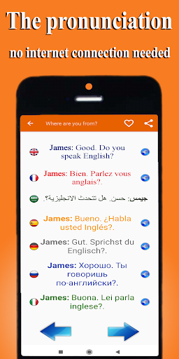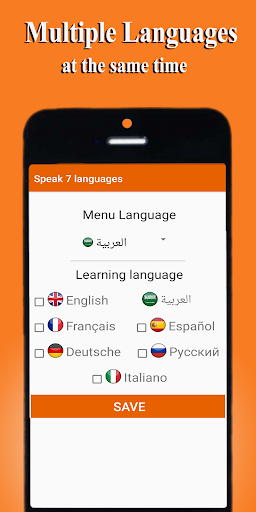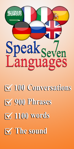 Learn speak 7 languages Arabic, English, French, Spanish, German, Russian, and Italian (offline) without connection internet