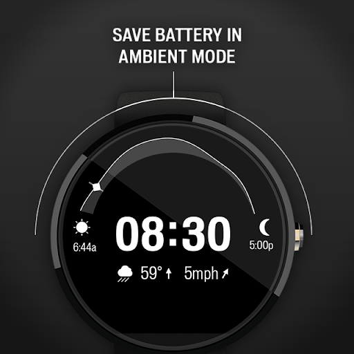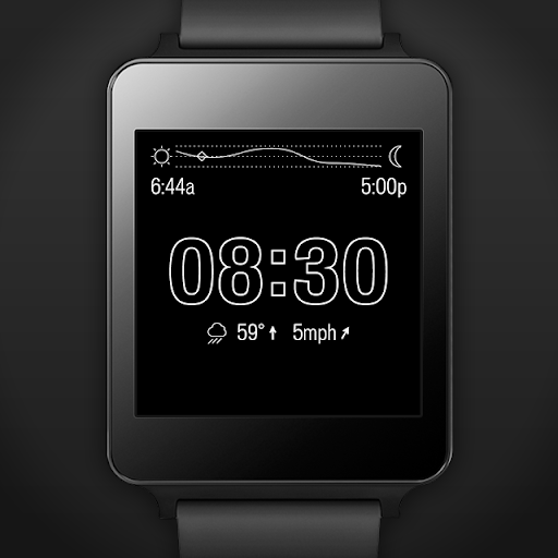 NOTA: Este rosto de relógio não aparecerá no seletor de face do relógio até que seu dispositivo wearable seja atualizado paraPirulito Android 5.0.