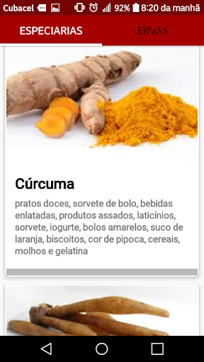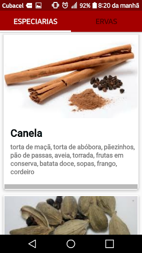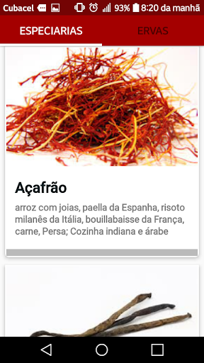 Especiarias, ervas e seus usos culinários é um aplicativo GRATUITO disponível para Android que contém uma grande variedade de especiarias , sua descrição e seus usos culinários de acordo com aos tipos de alimentos.