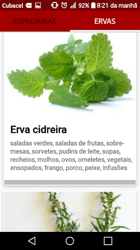 SIMPLES DE USAR: Você terá uma lista de todos os temperos e ervas e poderá ver qualquer item da lista e verá sua descrição e usos culinários