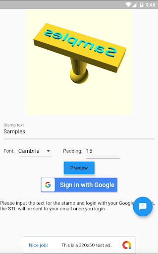Stamp STL Maker is a simple app that integrated with a cloud service which creates customized stamp STL file for 3D printing, simply input the text you wish to print