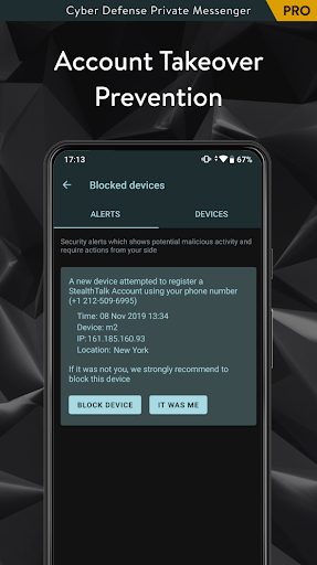 Toda a comunicação dentro do StealthTalk é sempre protegida com criptografia de ponta a ponta alimentada por um protocolo SDNP patenteado que usa ECC512, AES 256 e SHA-3 512 como primitivas.