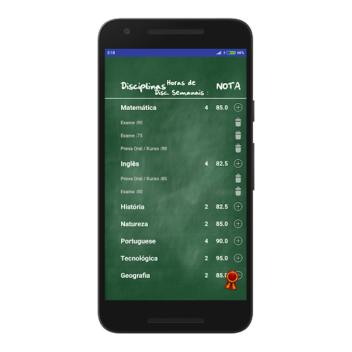 Podes inserir as notas das disciplinas e é calculada automaticamente a tua média.