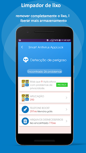 O AppLock of Antivirus ajuda a bloquear aplicativos sensíveis para proteger sua privacidade e segurança. Basta um toque para ativar o App Locker no seu dispositivo. mantenha seu segredo a salvo de bisbilhoteiros.