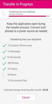 T-Mobile Content Transfer allows you to easily transfer your contacts, pictures, videos, music, messages and more from your old phone to your new phone. Simply download the app on both phones, follow the prompts to connect the phones and transfer your content via Wi-Fi. You’ll be provided the total transfer time and you have the option to transfer only the content that you need now. When you pair the phones again and restart the process, any content previously transferred will be skipped.