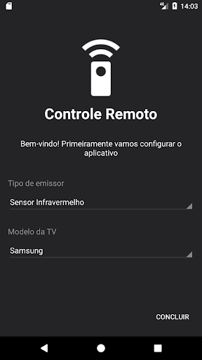 ATENÇÃO: Para que seu dispositivo seja compatível com o aplicativo, é necessário que ele possua um sensor de infravermelho. Caso o seu dispositivo não seja compatível o aplicativo irá informar logo na primeira abertura.