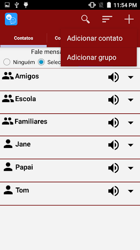 • Fale nenhum/selecionados/todos os seus contatos Whatsapp em voz alta.