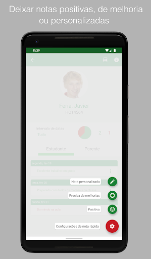 * Relatórios em massa de e-mail para todos os alunos ou pais