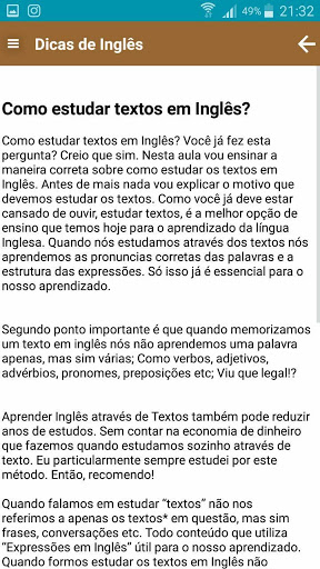 Neste Aplicativo eu ensino a maneira correta sobre como estudar os textos em inglês. Esta dica vai te nortear sobre o uso do aplicativo e também fora dele.