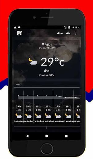 Thailand weather forecast, including high and low temperatures, wind speed, cloud speed and humidity.