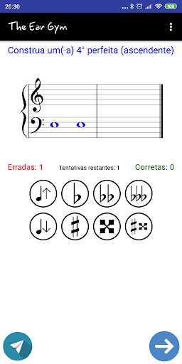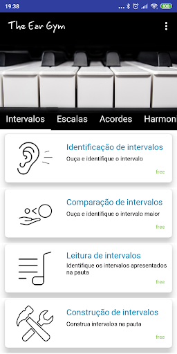 The Ear Gym é uma app eficiente de educação musical e treino auditivo que permite ao utilizador o treino de acordes, harmonia, intervalos, ouvido absoluto, leitura de claves etc.. Esta app oferece treino musical através de variados exercícios.