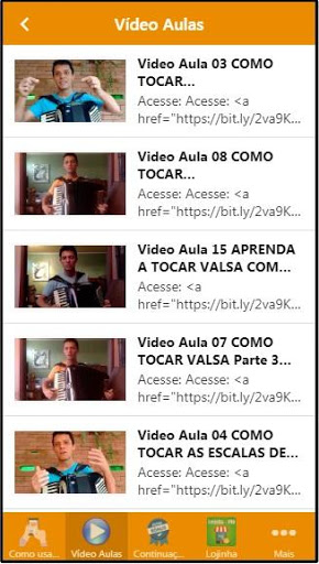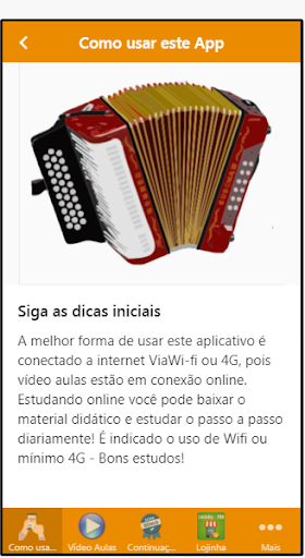 Usando este aplicativo você vai ter acesso a uma série de vídeo aulas de Acordeon que vão te mostrar desde o zero ate aprender 1 música.