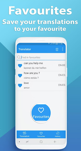 Also, if you like any sentence, word or phrase, you can save it to your favourite translation so you can access it later so easaly, and we have the hisory of all your translations if you want to remmember.