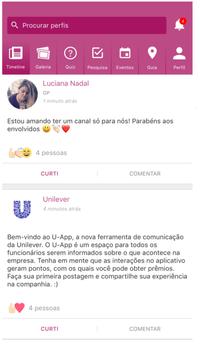 O U-App permite que você crie o seu perfil individual e compartilhe conteúdos e experiências com os colaboradores da Unilever, em um ambiente seguro e amigável que estimula a integração e colaboração do nosso time.