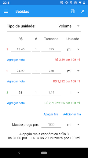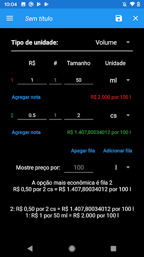 Você faz compras? Você tem que comparar os diferentes tamanhos do mesmo produto? Esta aplicativo irá fazer as contas e calcular qual o preço é o melhor!