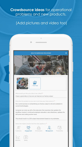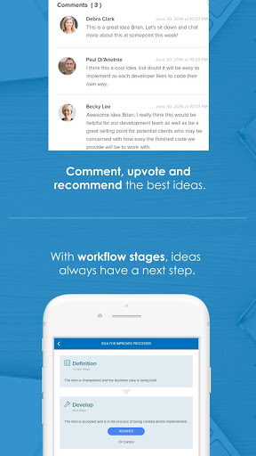 É uma verdadeira realidade que a maioria dos programas de sugestões falham. Nosso fluxo de trabalho único corrige a caixa de sugestões quebradas, compartilhando ideias de produtos e processos aprimorados com toda a organização ... ou "clusters" específicos para obter feedback e insights entre os pares.