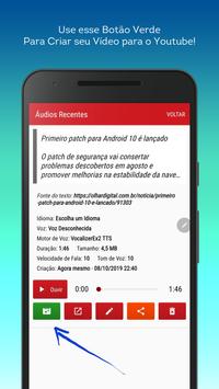 - Narrador de Voz para Youtuber, se você é Youtuber e quer ter mais acessos, use nosso app totalmente grátis, ele faz todo trabalho em apenas 1 app, ele transforma seu texto em áudio e depois converte o áudio em vídeo com a imagem que você quiser, sem marca d'água, o vídeo gerado também pode ser publicado no Facebook, Instagram, Twitter ou onde quiser, tudo gratuitamente, não vamos cobrar nada, e a publicidade que está no app não atrapalha a sua criação de vídeos e áudios.