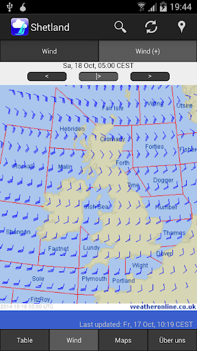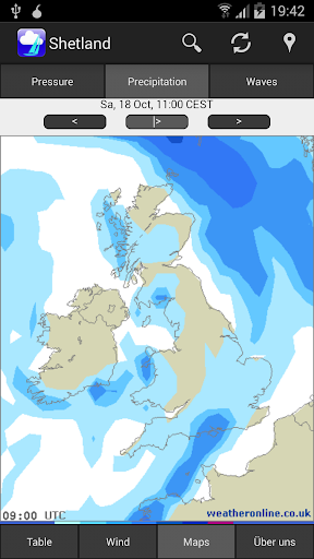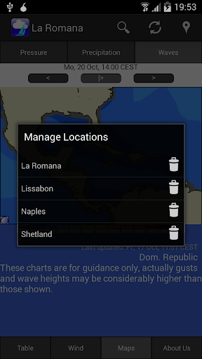 The WeatherOnline Sailing-App offers worldwide weather forecasts as well as weather maps. The Free Version contains Advertisement, is limited to one forecast location and does not retrieve forecasts for GPS-location.