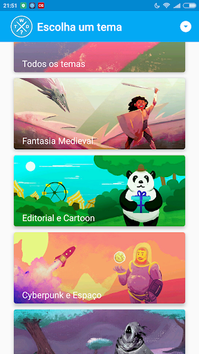 Oferecemos 12 temáticas de desenho, Fantasia Medieval, Espaço, Horror, Lhamas, e várias outras. Todas com milhões de ótimas (e muitas vezes estranhas) sugestões para você começar ja a desenhar. Acabou o bloqueio artístico!