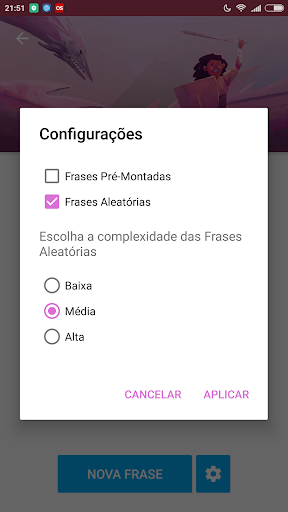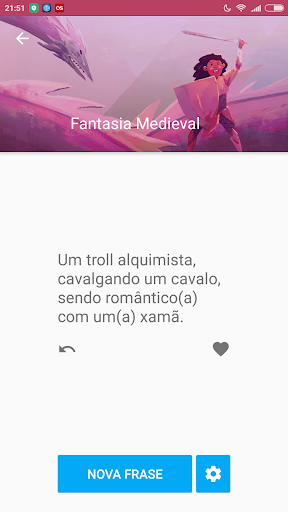 O Aplicativo oferece dois tipos de sugestões. Primeiro "Frases Aleatórias", uma fórmula que gera frases baseadas em palavras chaves. Segundo "Frases Pré-Montadas", sugestões do banco de dados do "What to Draw?"