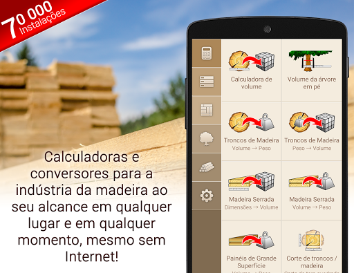 Calculadoras e conversores para a indústria da madeira ao seu alcance em qualquer lugar e em qualquer momento, mesmo sem Internet!
