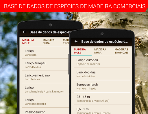Procura informações sobre espécies arbóreas, os seus nomes comerciais, traduções ou propriedades mecânicas?