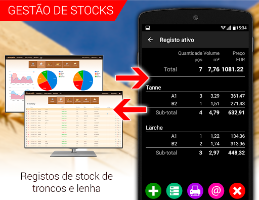 Instale a aplicação no seu telemóvel/tablet e obtenha um ótimo instrumento para gestão de stocks de madeira