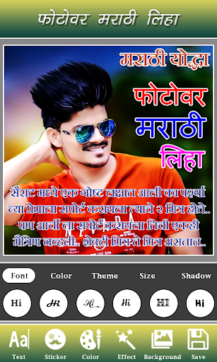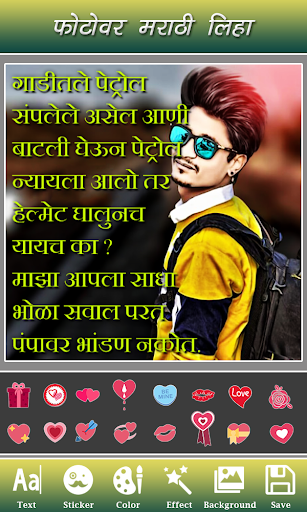 Se você gosta de adicionar texto em imagens ou citações ou pensamentos, escreva Marathi em aplicativos de fotos é o melhor aplicativo para adicionar texto, obras de arte e adesivos em fotos.