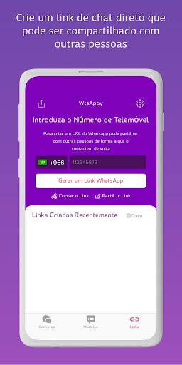 • Crie o seu próprio link WhatsApp através do WtsAppy e partilhe-o com quem o quiser contactar no WhatsApp, ficará à distância de um clique em vez de ter de partilhar e gravar contactos. O link WhatsApp é necessário, especialmente se estiver a gerir um negócio e agora pode criá-lo em 10 segundos através do WtsAppy!