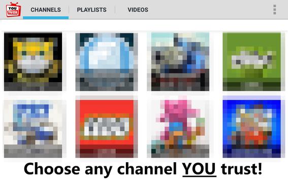 IMPORTANT READ THIS !!! : When used as parental control this app is designed to work with an Applock app. This will allow you to lock the normal YouTube app and the settings of the device.