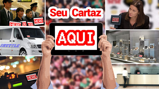 Seu Cartaz Aqui pode ser utilizado para recolher uma pessoa no aeroporto, em conferências de imprensa, em la recepção